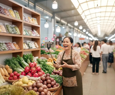 Chỉ cần í ới nhau qua livestream, rau tươi, hoa quả, thịt thà… sẵn sàng ship ngay tới cổng.